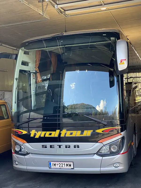 Bei uns erhalten Sie modernst ausgestattete Reisebusse, alle mit Klimaanlage, Liegesitzen, Doppelverglasung, Kühlschrank, ABS, ASR, Retarder, WC und Video, teilweise mit DVD-Player, Fernsehempfang, Bordküche und Klapptischen an jedem Fahrgastsitz.